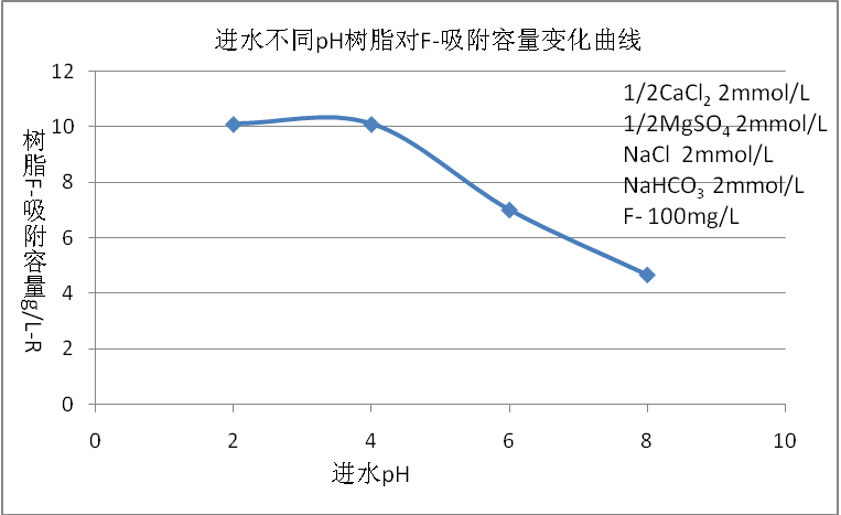 1. 進(jìn)水不同pH樹脂對(duì)F-吸附容量