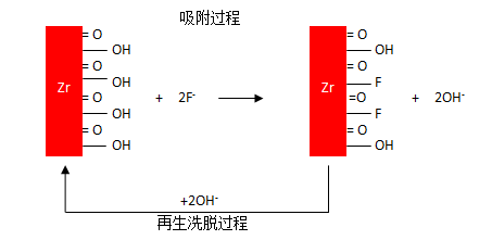 此樹脂工作原理是將離子交換樹脂上載鋯,樹脂上載有氧化鋯,會(huì)把F-吸附在樹脂表面和孔道內(nèi)部。載氧化鋯的樹脂對(duì)F-的選擇性非常高,可以將飲用水、料液F-濃度降低到1mg/L以下。另外,此樹脂對(duì)溶液中砷酸根選擇性也很高,可以用于水和廢水溶液中除砷。